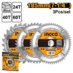 INGCO TCT saw blades set (3 Pcs/set) 185mm(7-1/4″”)