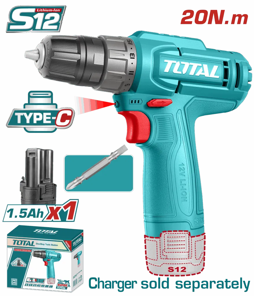 Total Cordless drill Voltage:12V 20Nm