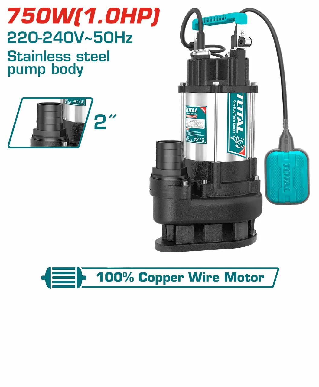 TOTAL Submersible pump 550W(0.75HP)